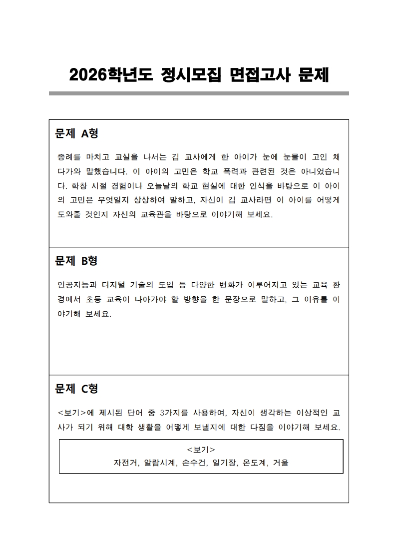 공지사항 467번 “2026학년도 정시모집 면접고사 FAQ 안내”